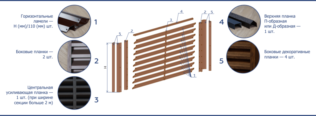 свяжитесь с нами для более подробной консультации Забор-жалюзи — это ограждающая конструкция, состоящая из отдельных металлических секций. Сходство с жалюзи забору придают горизонтальные ламели, закрепленные на каркасе под небольшим углом. Угол отклонения нижней части ламели от вертикального уровня обеспечивает небольшой просвет между отдельными пластинами — такой же, как у приоткрытых классических жалюзи.
